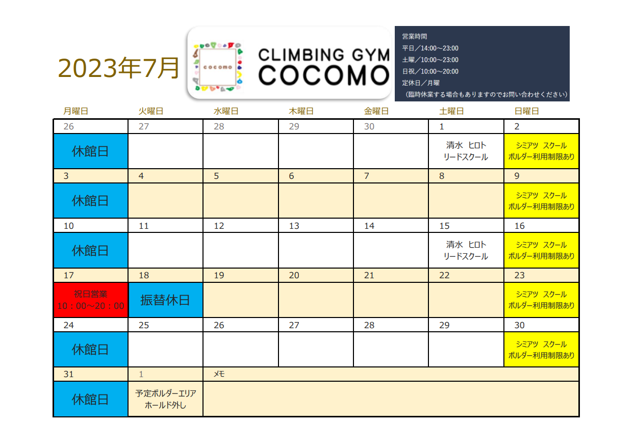2023年7月の営業日カレンダーになります。