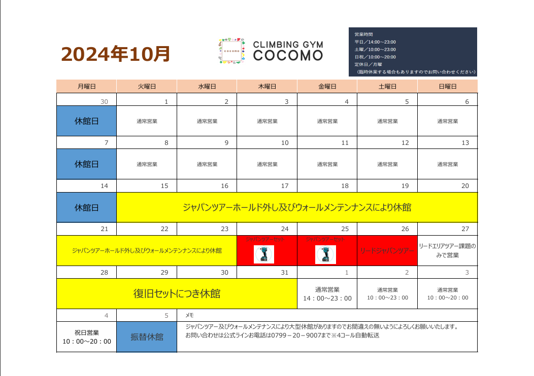 10月営業カレンダー