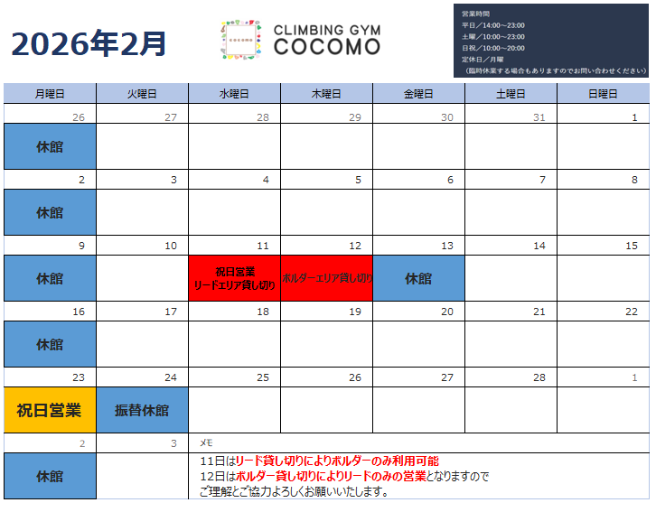 2月営業カレンダーになります。